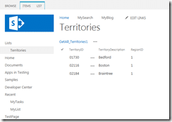 - Select our generated Northwind_MetaMan.Territories External Content Type, click “OK”