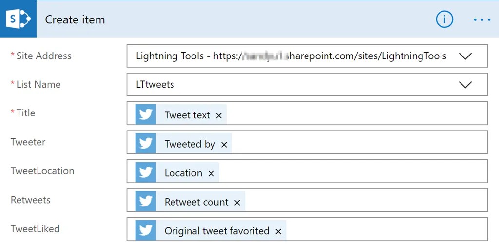 After trying some of the available templates, you may wish to build a flow of your own from scratch. So let’s see how that’s done. Let’s say we want to capture tweets mentioning our company name and save information about the tweets into a SharePoint list for analysis.
