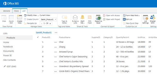 The BCS External List provides Office 365 users with the ability to view data, as well as Create, Update and Delete data via a SharePoint list. Users can build views with different filters and sort criteria. Each Read List (Finder Method) that is created automatically creates a view within the External List, when the External List is provisioned. There are some list features that users will be used to such as Workflows, Item level permissions and multi row editing which are unavailable since the data is linked to and not imported.