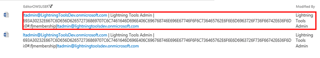 7. (optional) You will then need to create a ‘Calculated Column’ based on the ‘EditorOWSUSER’ column. The reason you need to do this is because it returns unwanted text. Using a calculated column will allow you to remove the unwanted text. The image below is comparing the ‘EditorOWSUSER’ column and the ‘Modified By’ calculated column.