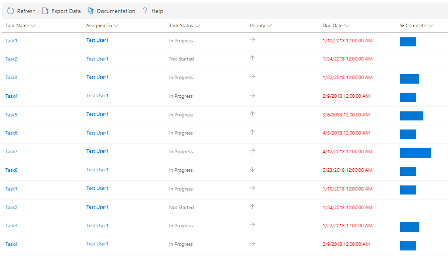 In the below screenshot, I have applied column formatting to the Priority column as well as the percentage complete: