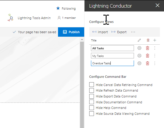 It may be that you want multiple views to be displayed within your rollup web part, just like you can have multiple views displayed within a SharePoint list. The Lightning Conductor CSWP enables you to easily build additional views within the same web part instance. Each view instance can be the same, or different scopes and also the same or different list types or content types. For example, you may have a view to show Tasks from the current site, and then another view to show tasks from the current hub site and associated sites.